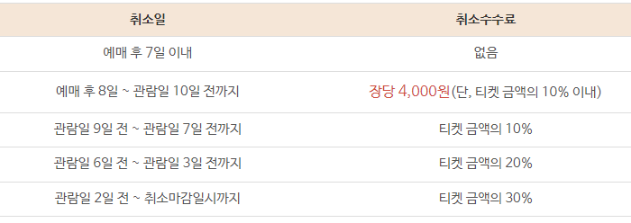 11월 3일 오후 5시 이후 예매 티켓 취소 변경 환불은 불가합니다.