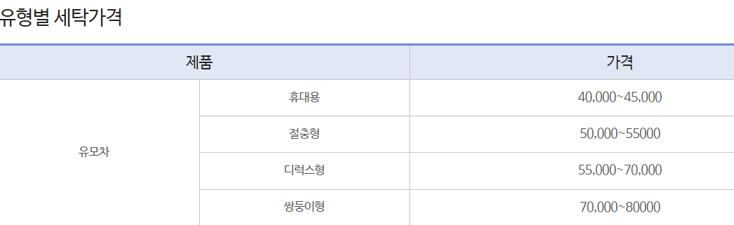 유모차 세탁 업체들의 가격표 참고해보시면 도움이 될 것 같습니다.