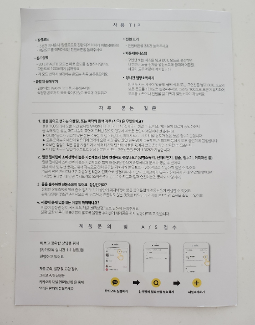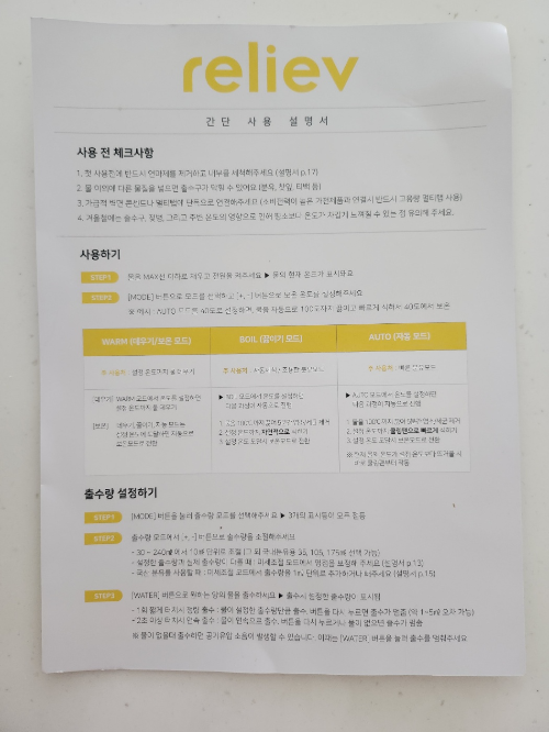- 물을 MAX선 이하로 채우고 전원켜기
