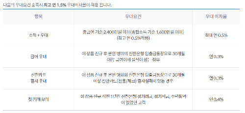 실제 우대이자율은 바로 적용이되는 것이 아니라 예금기간 중 요건을 충족하는 경우 추후 적용이 됩니다. 우대이자율은 중도해지에는 해당없으며, 만기해지시에 적용이 됩니다.