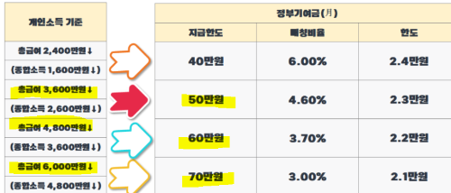 👉 급여 2400만원이하 - 정부금 144만원이 더해져 총수령액 5천만원 (혜택 800만원)