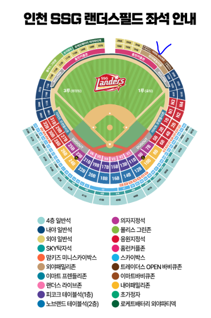 인천SSG 랜더스필드 좌석을 살펴보면 상당히 다양하게 존이 구성되어있는것을 볼 수 있습니다.