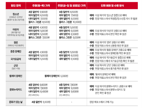 - 4층 일반석 일반 평일 일반 11,000원 / 주말 13,000원