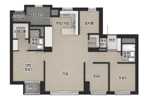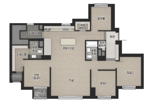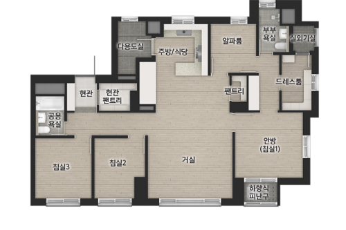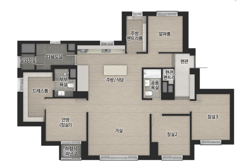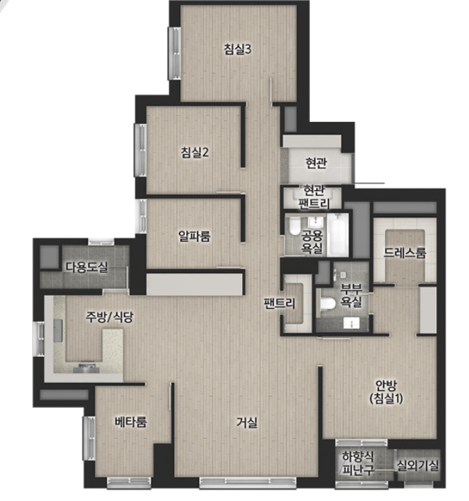 84C 타입은 팬트리 위치가 조금 애매하네요? 음? 방마다 문 열지 않고 이어져있는 것 같은 구조인데요. 개인적으로는 글쎄요.