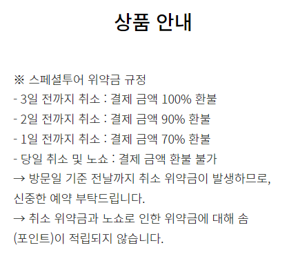 - 방문예정일 전날까지 100% 취소가능합니다. 당일예약은 취소 환불 불가입니다.
