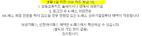만약 알뜰교통카드 기존회원이라면, 4월 30일을 마지막으로 더경기패스 회원으로 전환해주세요.