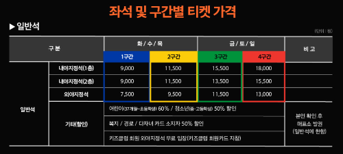 - 지정석: 더 편안한 관람을 원하는 팬들을 위해 지정된 자리에서 경기를 볼 수 있는 좌석입니다.