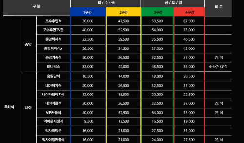- 가족석: 가족 단위의 관람객을 위해 특별히 마련된 공간으로, 어린이들을 위한 놀이 공간도 제공됩니다.