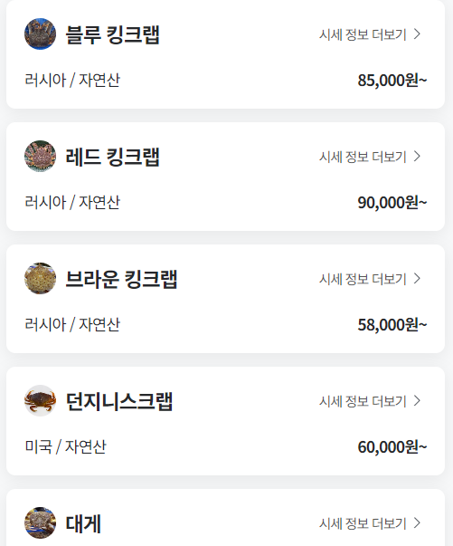 킹크랩이나 대게는 평소에 잘 안먹다가 갑자기 생각나는 음식들 중 하나이죠. 주변에서 가까운 수산시장을 번뜩 떠올리게 되실텐데 선뜻 방문하기가 어려운 것 같다면, 미리 킹크랩시세 알아보