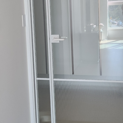 ✔️ 비대칭 여닫이 중문 : 좁은 면을 고정시켜놓고 넓은 도어를 열고 닫고, 필요시따라 고정문을 여는 방식