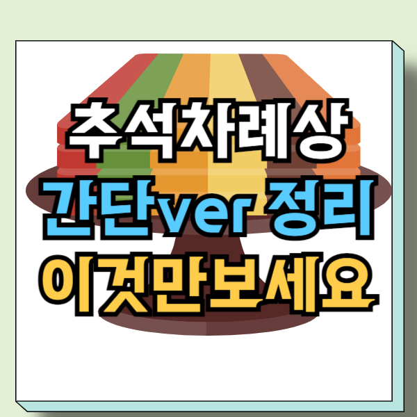 이렇게 추석 차례상과 차례 지내는 법을 간단히 살펴봤어요. 추석은 가족들과 함께 모여 따뜻한 정을 나누는 시간이죠. 차례 준비가 조금 부담스러울 수 있지만, 간소화된 방법으로도 충분히 의미 있는 명절을 보낼 수 있답니다.