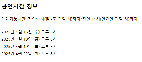 공연 날짜는 2025년 4월 16일, 18일, 19일, 22일로 확정되었어요