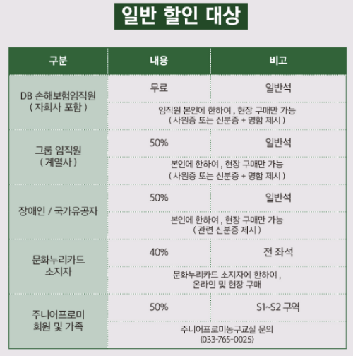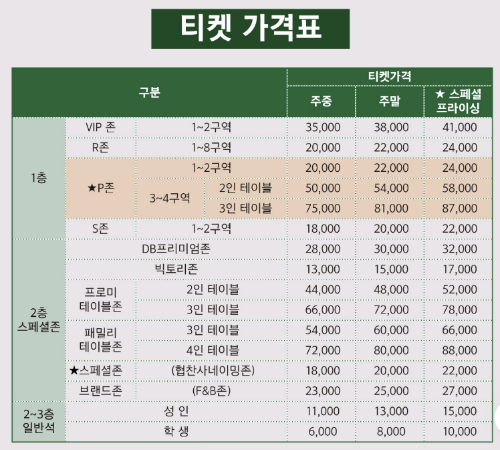 각 지역 구장별로 가격이 조금씩은 다르니 위 사진은 대략적으로 참고해보세요.