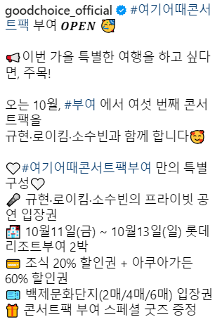 역사와 예술, 그리고 음악이 어우러진 이번 '여기어때 콘서트팩'은 부여에서의 새로운 여행 경험을 원하는 분들에게 완벽한 선택이 될 거예요.