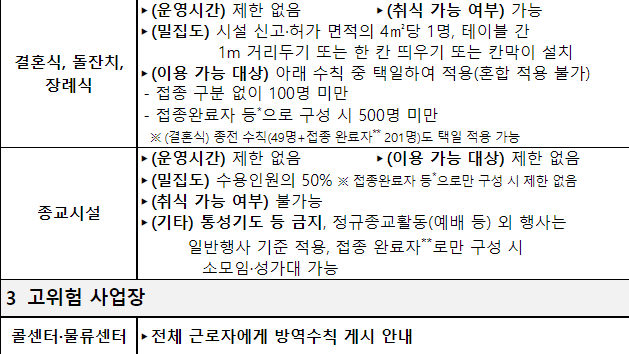 - 기타 행사, 모임은 접종 여부와 상관없이 100명 미만