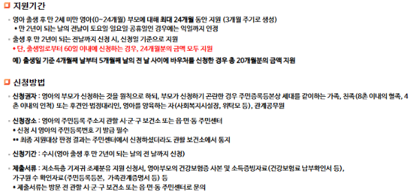 - 차상위 다자녀 가정 (만 24개월 미만 영유아가 다자녀로 포함될 경우)