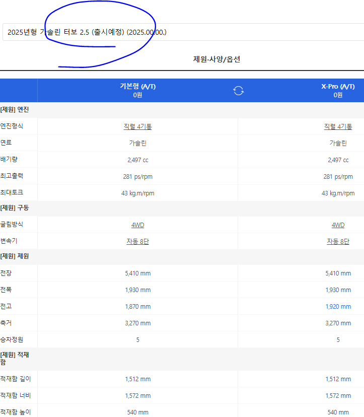 - 구동방식: 전륜구동과 선택 가능한 사륜구동