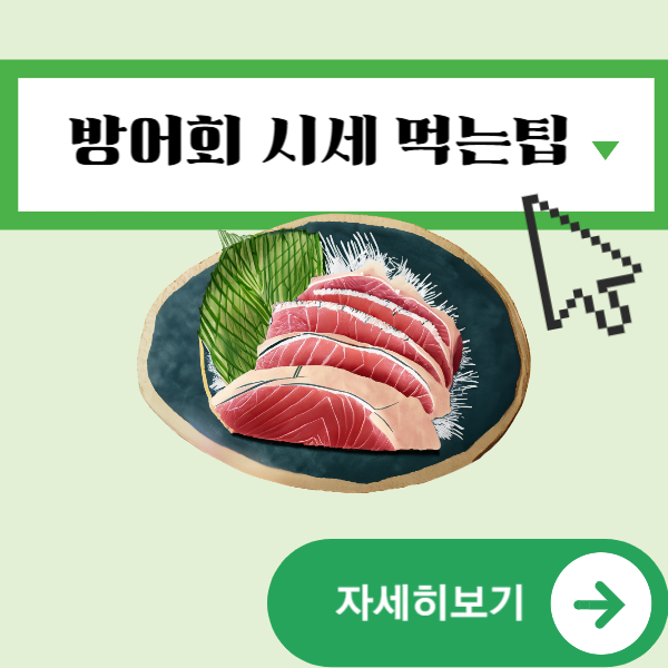 - 부위별 맛보기: 대방어는 등살, 뱃살, 꼬리살 등 부위마다 맛이 다릅니다. 특히 뱃살은 기름이 많아 가장 고소한 부위로 인기가 높습니다.