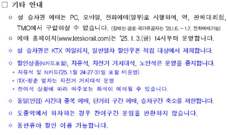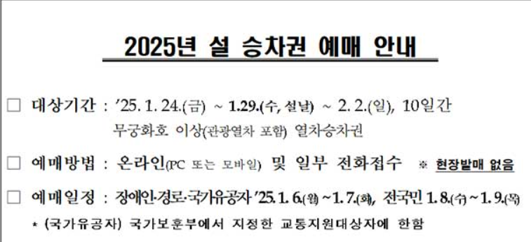 1. 2025 설날 기차표 예매 일정 확인하기