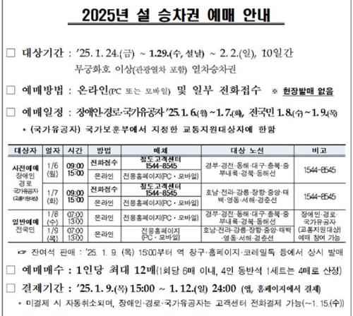 2025 설 승차권 예매 안내: 경부선 등 주요 노선 예매 시작!
