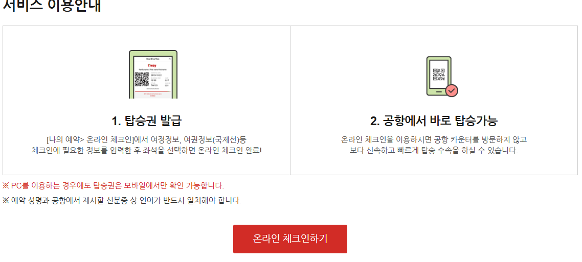 📌 온라인 체크인 방법