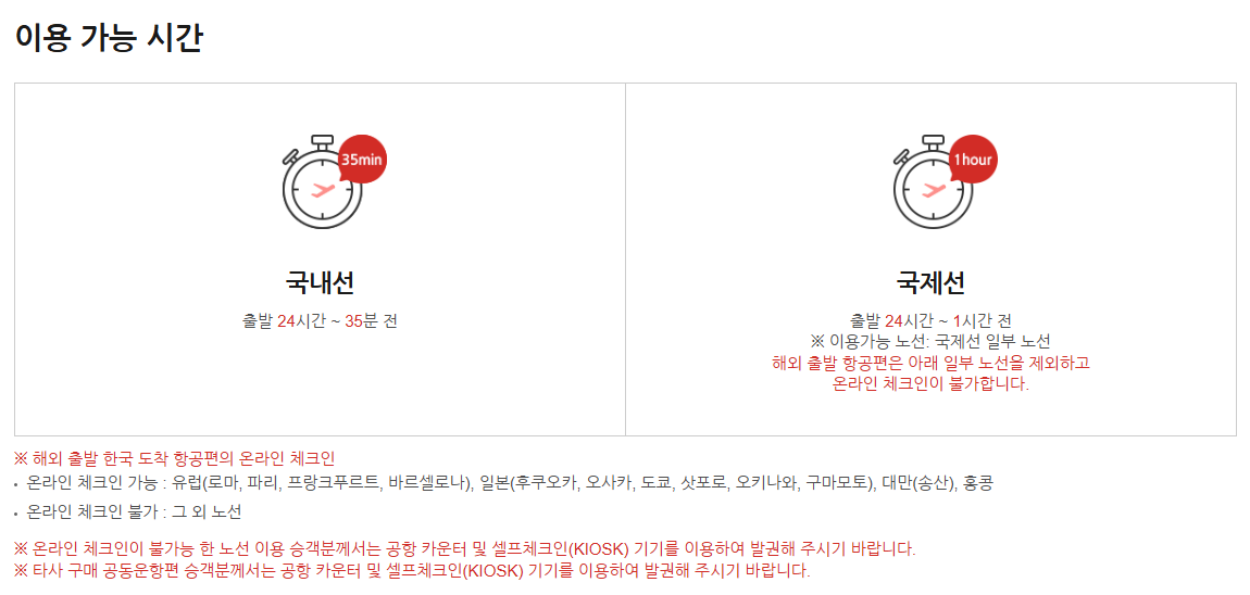 ✔ 온라인 체크인은 출발 24시간 전부터 가능해요.
