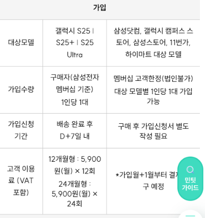 | 가입 가능 대상 | 갤럭시 S25 시리즈 구매자 (삼성닷컴, 갤럭시 캠퍼스 등) |