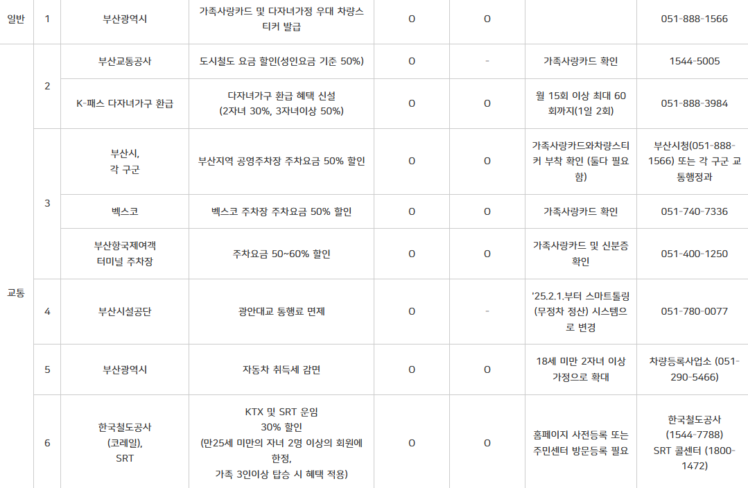 부산시는 다자녀 가정을 위한 교육·교통비 지원도 확대하고 있습니다.