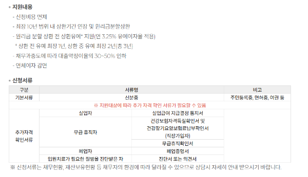 - 이자 감면 및 상환 기간 연장 (최대 10년까지 가능)