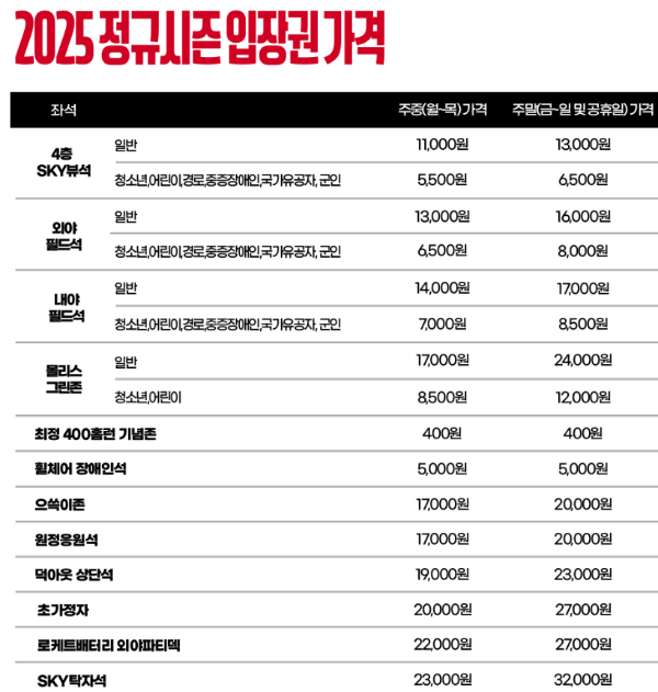 - 인기 있는 경기(주말 경기, 라이벌전 등)는 빠르게 매진될 수 있어요.