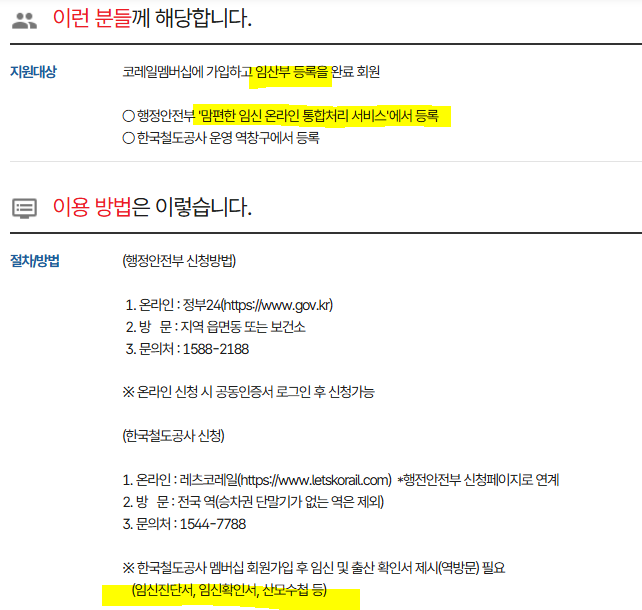 KTX 임산부 등록방법 및 대상자 확인