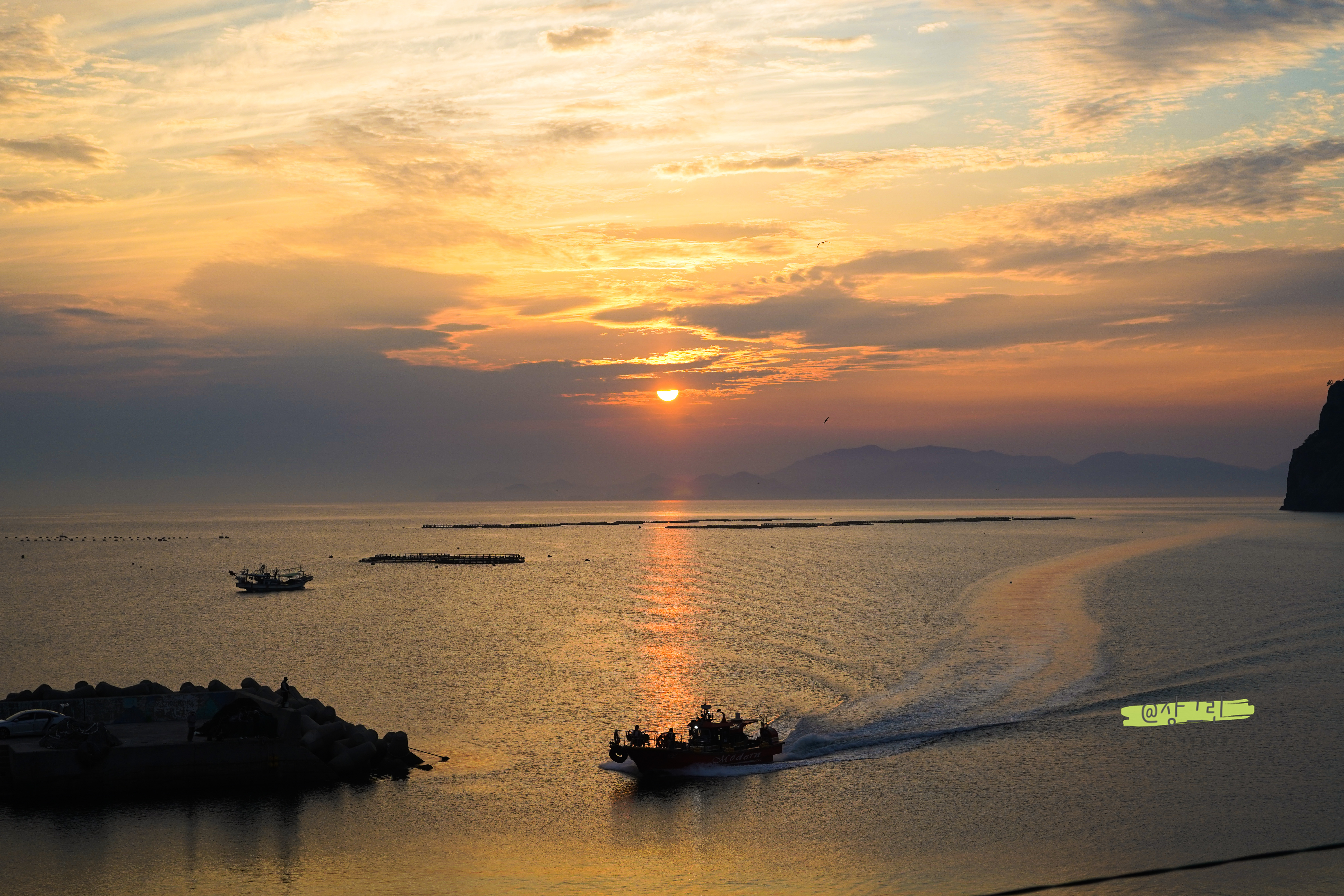 해도 뉘엿뉘엿 지고, 마침 고기잡이 배들도 들어오더라고요. 너무 멋진 광경이었습니다. 해 지는 모습이 장관이라고 사장님께서 말씀해주셨는데 실제로도 너무 멋있었어요. 가장 마음에 드는 사진입니다! 박정현의 꿈에를 이 시간의 노래로 들으면서 욕지도 여행 그리고 오랜만에 하는 캠핑 감성에 흠뻑 젖은 날이였습니다. 더 자세한 사진과 후기는 네이버 블로거 @장그린 인플루언서 홈에 있답니다! 욕지도 2박3일의 여행은 틈틈히 담아볼 계획이에요.