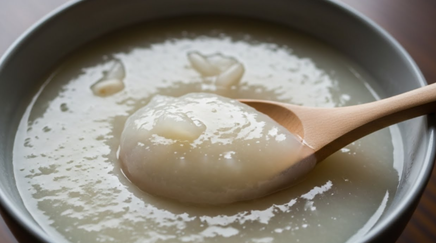 - 너무 오래 끓이면 찹쌀풀이 떡처럼 될 수 있어요.