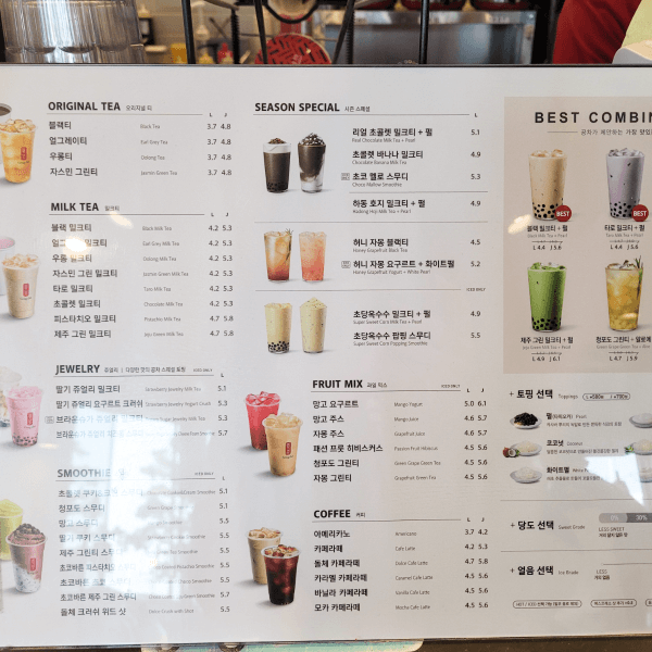 공차 베스트 콤비네이션 (가장 맛있는 조합) L사이즈 기준 가격 알려드릴게요.