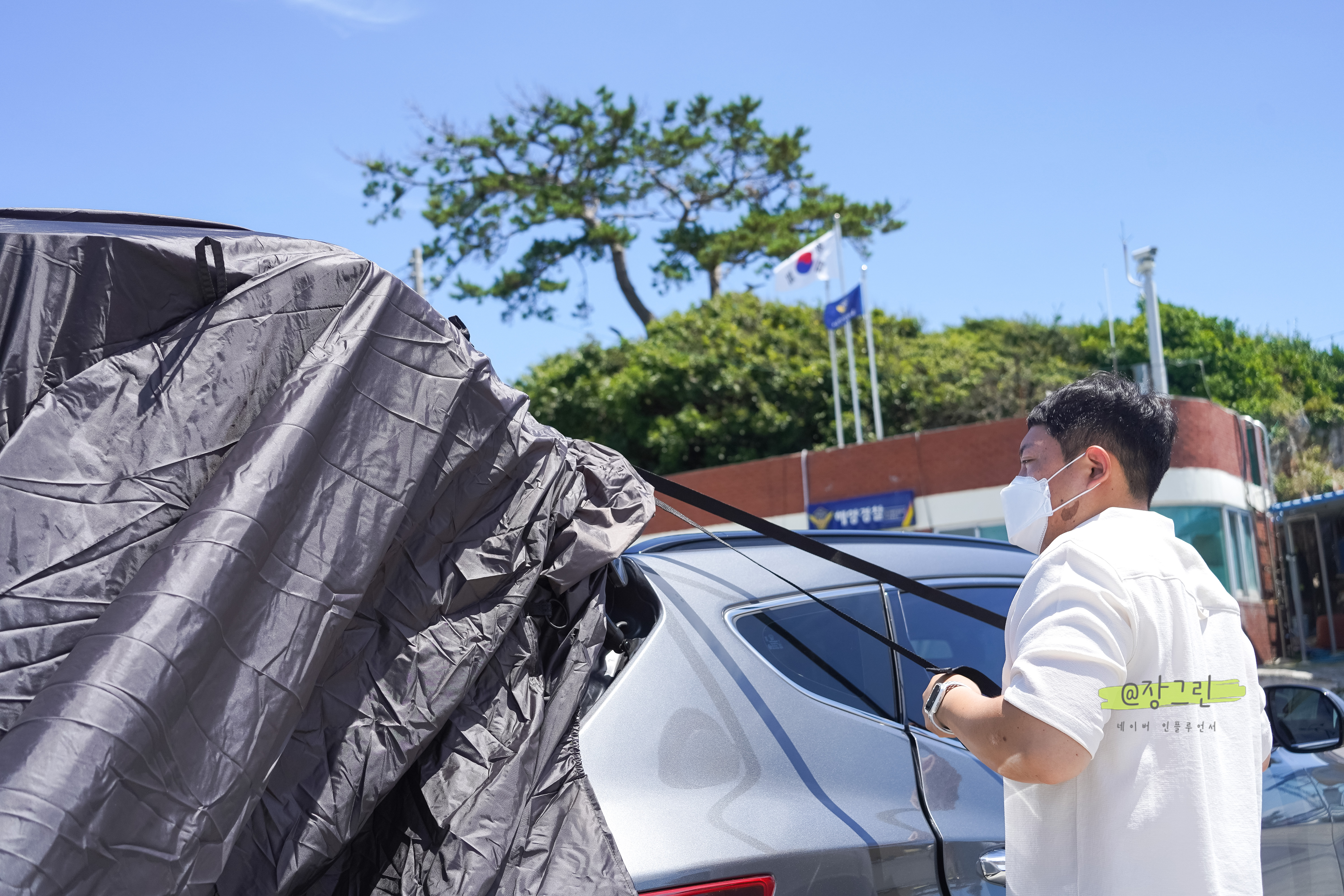 나사리해수욕장 정말 좋아하는 곳인데요, 여기는 파도가 좋아서 부산의 여느 해수욕장들 보다 파도도 좋고 사람들도 많이 없는 편이라서 가족들 혹은 성인 어른들끼리 놀기도 좋답니다. 드라이브 삼아, 혹은 해마다 들리는 곳이 울산 간절곶 그리고 울산 나사리해수욕장 코스라고 할 수 있을 정도로요. 차박텐트를 또 협찬받게 되어서 피칭할 곳을 찾다가 다시 들른 나사리, 운 좋게도 텐트를 딱 펴기 좋은 자리에 주차를 할 수 있었답니다.