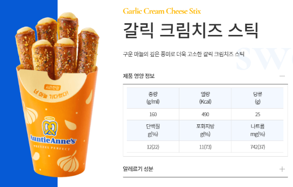 2022년 2월 갈릭페퍼치즈핫도그, 갈릭크림치즈스틱이 새로 출시되었습니다. 2월의 맛은 과연 갈릭인가본데요, 한국사람들의 마늘 사랑이야 뭐 말해뭐해 예상가면서 크게 호불호가 없을 맛이라는 생각이 드는데요. 역시나 칼로리는 500kcal 정도 되고, 갈릭맛의 크림치즈 필링이 채워져있을 것 같습니다. 주변에 앤티앤스 프레즐 가맹점 보이면 바로 들어가서 구매해봐야 할 부분이죠! 가격은 4천원대로 여느 디저트보다 저렴해서 부담없습니다.