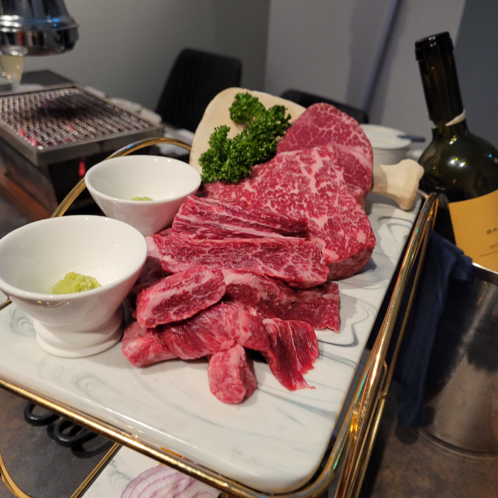 1인당 10만원어치에 배부르고 질 좋은 한우를 부위별로 즐겼는데요. 이미 수영에서 유명한 고기집 사장님이 차린 광안리 우토피아는 조금 더 질 좋은 고기를 좋은 분위기에서 즐길 수 있다는게 장점입니다.