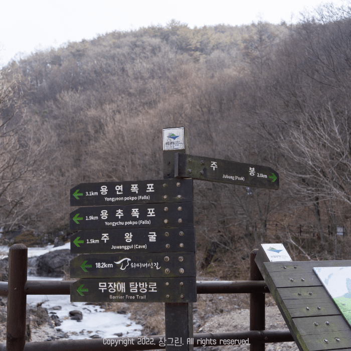 청송 여행을 계획하고 계시다면 꼭 놓치지 말아야 할 주왕산 국립공원입니다. 여행의 시작을 상쾌하게 시작할 수 있겠더라고요. 대전사에 도착해서 주왕산 가는 길 푯말을 본 순간부터 저희는 용연 폭포, 용추폭포만을 목표로 따라가면 됩니다. 길은 그냥 쭉-뻗어있는 길이고 그저 상쾌한 공기와 차갑게 얼굴을 스치는 바람을 느끼면서 걷기만 하면 됩니다.