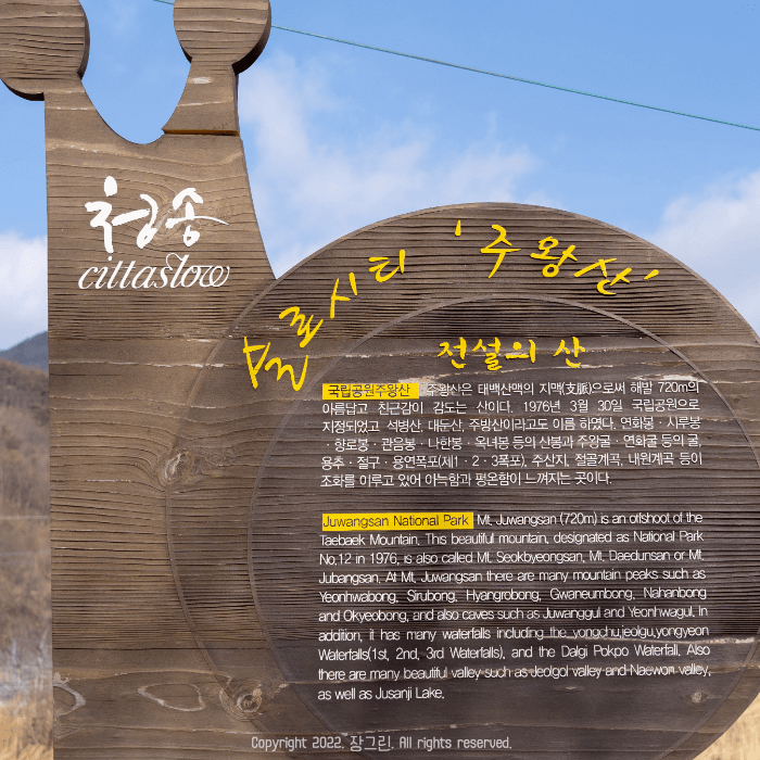 1박 2일로 청송 여행을 다녀왔습니다. 하룻밤을 자고 나서 다음날 여행의 시작은 산뜻하게 주왕산 국립공원으로 향했습니다. 상의 주차장에 일주차(5,000원)를 하고 1인 주왕산 국립공원 입장료 (3,500원)을 지불하고 들어갔습니다. 흔히 주왕산은 단풍으로 잘 알려져 있고 실제로도 가을이 가장 예쁠 것 같았습니다. 겨울은 조금 을씨년스럽기도 하더라고요.