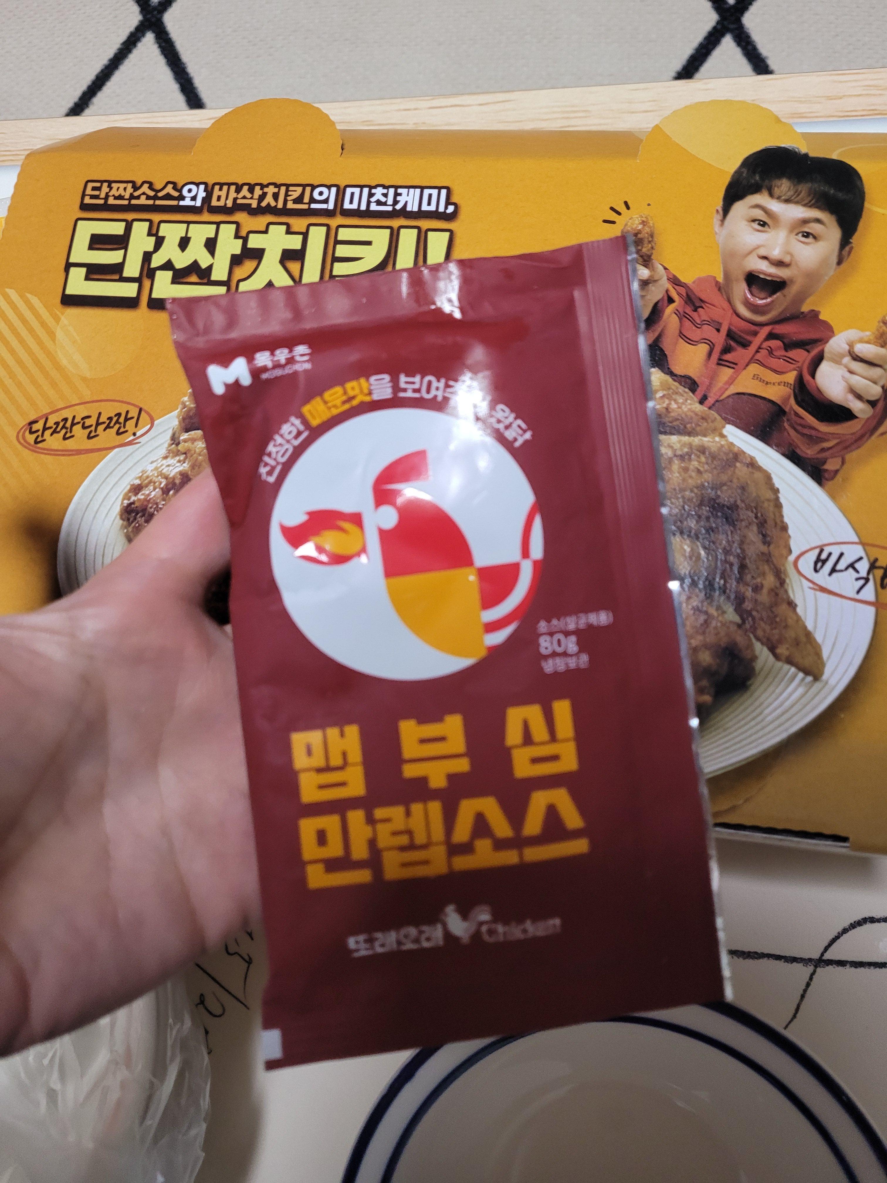 맵부심 후라이드 양념은 보기만 해도 빨간데요. 이 소스가 범벅되어있다고 생각하니 벌써부터 몸서리가 쳐질 정도네요. 매운 치킨을 좋아하시는 분들, 신상 치킨에 도전하는 것에 망설이지 않는 분은 한 번쯤 드셔 보세요. 저는 또래오래 후라이드에 맵부심 소스를 찍어먹는 편을 더 추천드립니다!