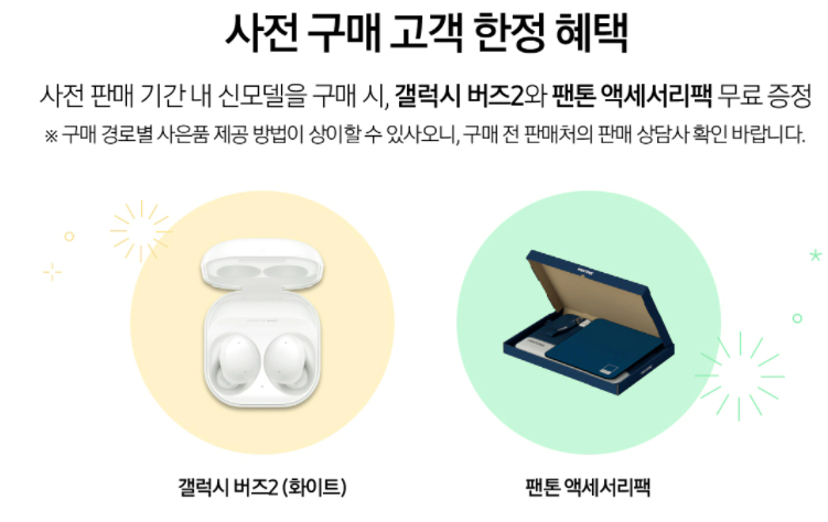 사전판매 기간 내 행사모델을 구매하고 혜택 신청을 해야 합니다. 사전 판매 기간 내 신모델을 구매하셨을 때는 갤럭시버즈2 화이트, 팬톤 액세서리 팩이 증정됩니다. 삼성케어플러스 파손 보장형 1년형, 디즈니 플러스 3개월 이용권, MS office M365가 5천원에 구매 가능하다니 갤럭시북 사전예약 혜택이 괜찮은 것 같다는 생각이 듭니다.