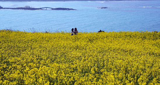 제주를 찾는 관광객들이 가장 좋아하는 해변 1위, 바로 함덕해수욕장입니다. 함덕해변의 서우봉 일대에도 연일 유채꽃을 보러 오는 관광객들의 발길이 끊이지 않은 제주 유채꽃 명소입니다. 푸른 바다, 노란 꽃, 맑은 하늘과 햇볕이 여행의 기분을 제대로 만끽하게 해주겠더라고요. 저도 빨리 떠나고 싶네요 :)