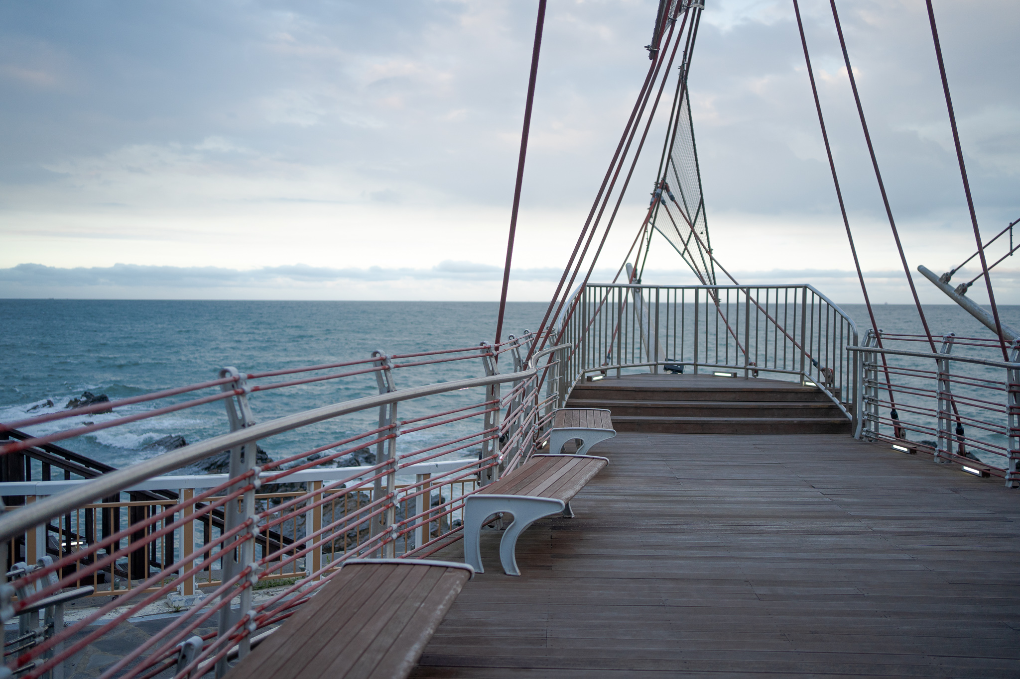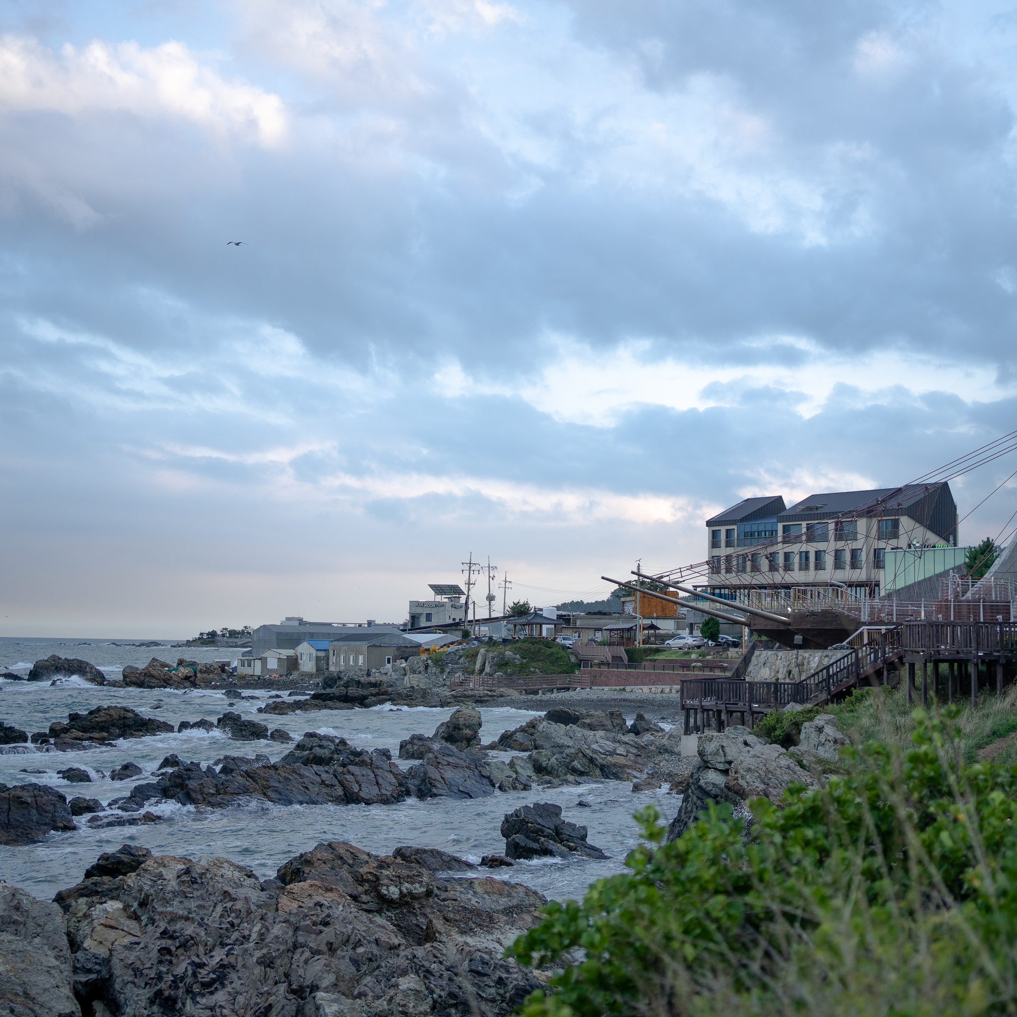 바다가 시원하게 보이는 곳에서 커피 한잔, 그리고 과일요거트로 상큼하게 기분 업 하고나면 걸어보기 좋은 기장 오랑대공원으로 발길이 절로 간답니다. 오랜만에 답답한 마음도 해소할 겸 산책을 하는데 기분이 너무 좋았습니다. 흐린 날이였지만 파도가 철썩이는 소리와 기장의 푸른 동해바다, 그리고 배 모형이 뭔가 항해하고싶게 만들더라고요.