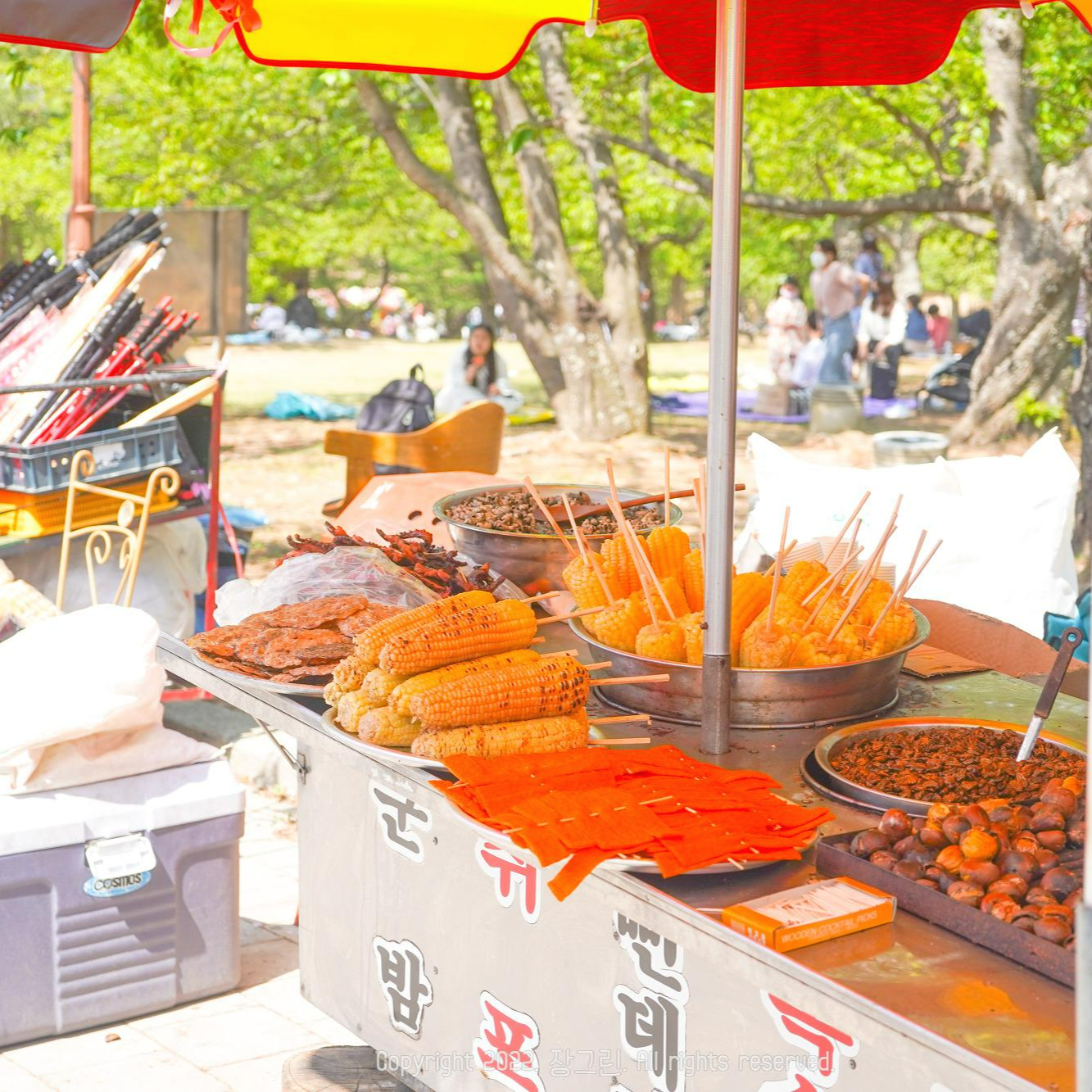 경주데이트 제대로 오신 분들은 캠핑의자, 접이식 테이블, 돗자리 다 챙겨오셔서 이 공간을 만끽하고 계시더라고요. 각자의 자리에서 각자 휴식하는 모습을 보니 좋았어요. 방울방울, 손에 잡힐 듯 여러겹으로 꽃잎이 겹쳐져 있는 겹벚꽃은 빨리 져버린 벚꽃엔딩에서 '조금만 더 기다려' 하는 듯, 마지막 봄까지 기쁨을 주네요.