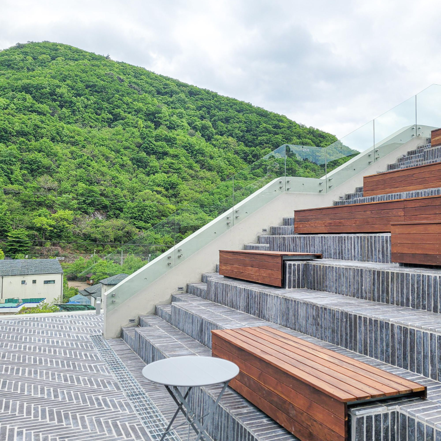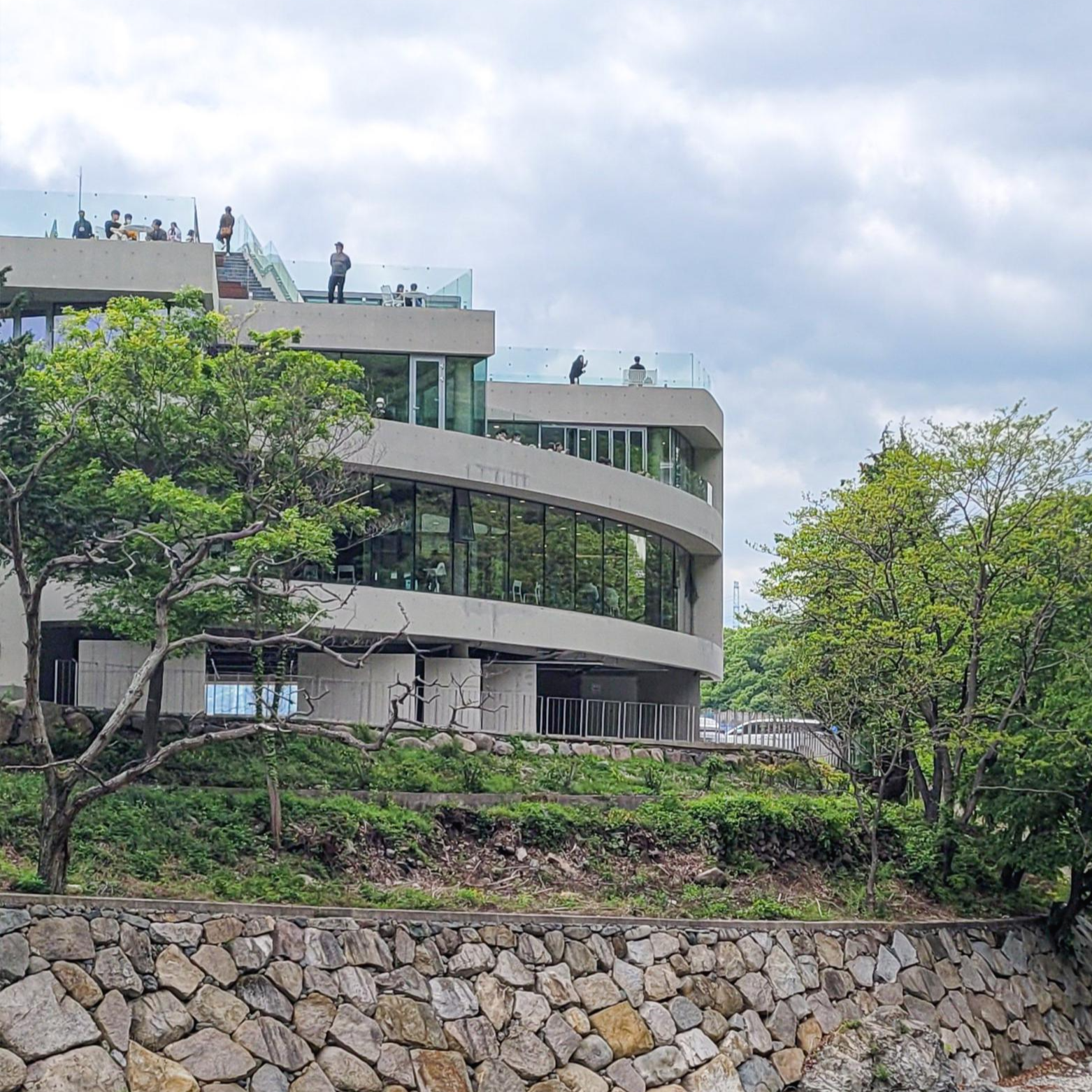 근처 절도 있고 등산복을 입고 내려오시는 분들도 꽤 보이시더라고요. 카페 앞에 이렇게 맑은 물이 흐르는 소리, 그리고 데크길이 잘 되어있어서 커피 한잔하고 산책해보기로 했습니다. 비교적 한산할 때라 여유롭게 올라가봅니다. 양산 아미드포레는 1층 오픈스페이스, 2층 카페, 3층 테라스, 4층 루프탑으로 뻥~ 뚫린 공간을 만끽할 수 있습니다.
