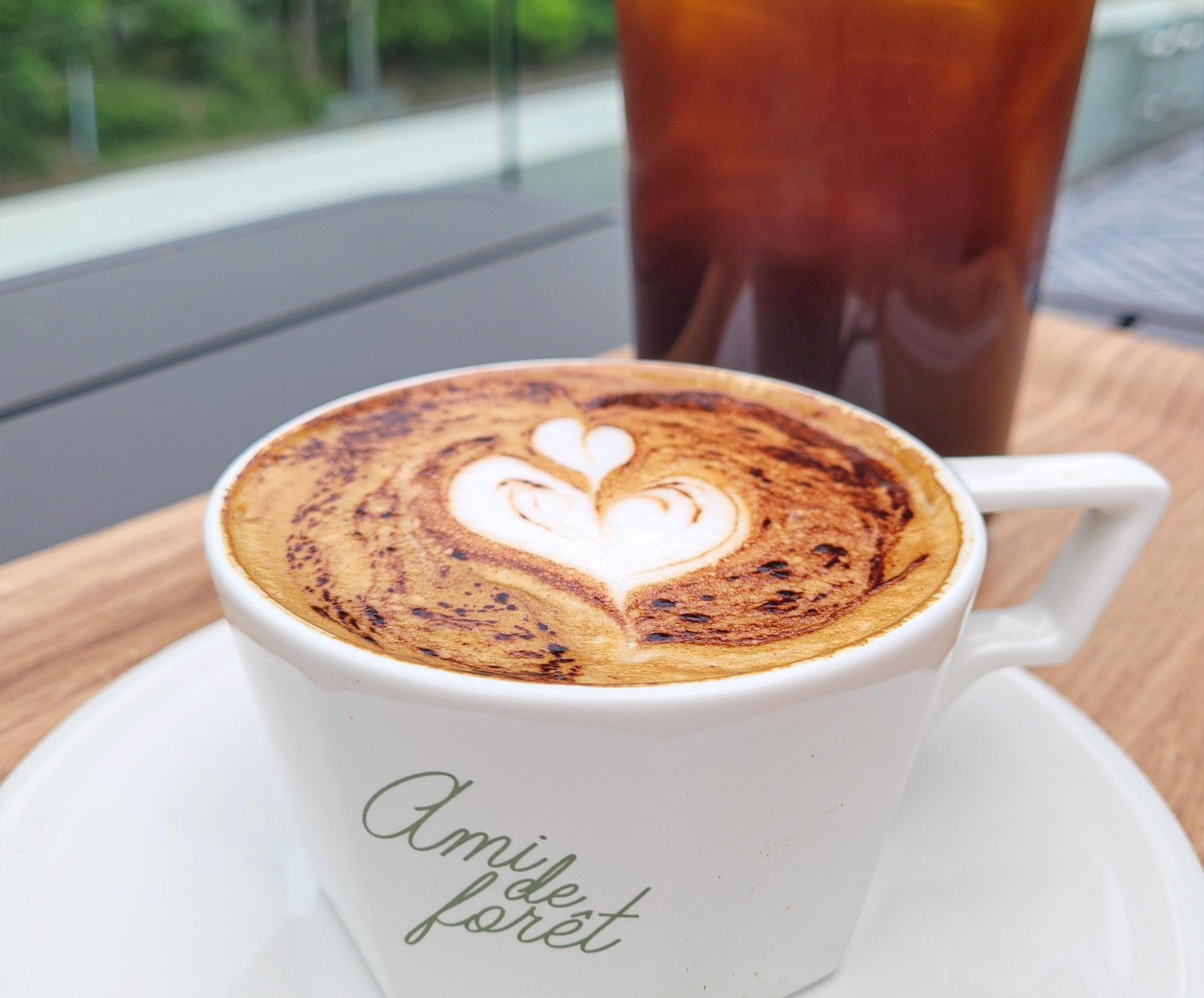 전체적으로 노키즈 공간은 아니지만 3층부터는 떨어질 위험이 있어 안전을 위해 노키즈존입니다. 실내 공간에서 머무르는 건 상관없는 듯 하네요. 천장이 높아서 탁 트인 느낌이 들고, 사방이 통유리로 되어있어서 초록초록함이 그냥 이 공간의 자연스러운 배경이 되는 것 같습니다. 직원분들도 친절하시고 테이블도 널찍널찍하게 있어서 답답함이 없었던 아미드포레의 인테리어가 참 마음에 들었어요.