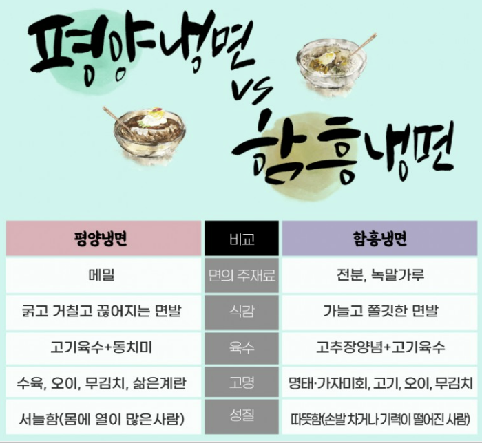 평양냉면과 함흥냉면의 차이점을 알고 맛있게 즐겨보시길 바라겠습니다.
