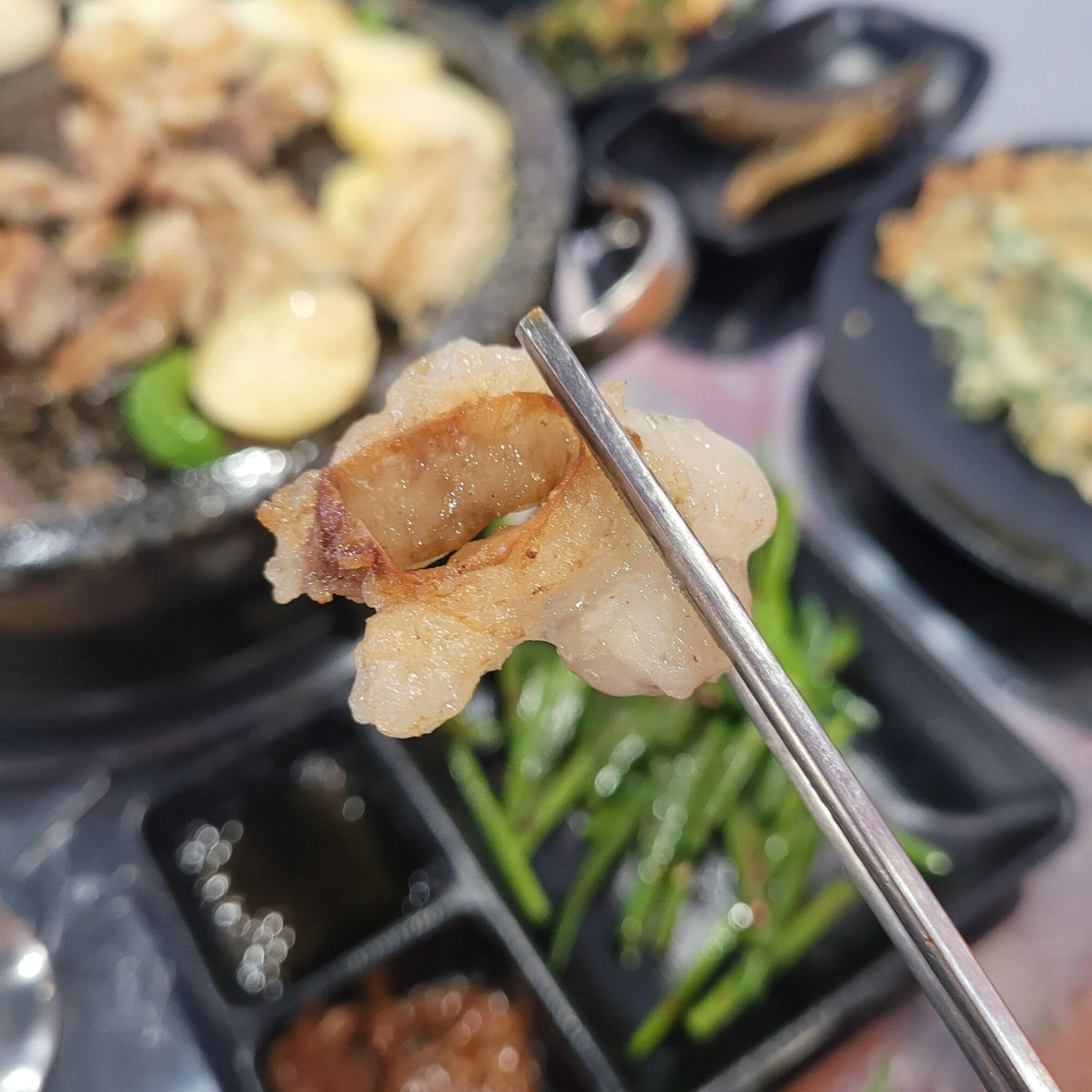 쫄깃한 식감을 자랑하는 염통과 우삼겹은 파절이에 새콤함, 그리고 소스 콕콕 찍어서 먹으니 아 식감 정말 좋으네요, 쫄깃쫄깃한 염통이 일품입니다^^ 우삼겹은 쌈장 그리고 깻잎짱아찌에 싸서 먹으니까 더 맛있는 것 같아요. 느끼할 것 같다 생각들어도 막상 먹으면 고소함이 퍼져서 행복한 미소가 절로 지어진답니다. 좌동 동춘돌곱창 양이 푸짐한 점도 정말 마음에 들었습니다.