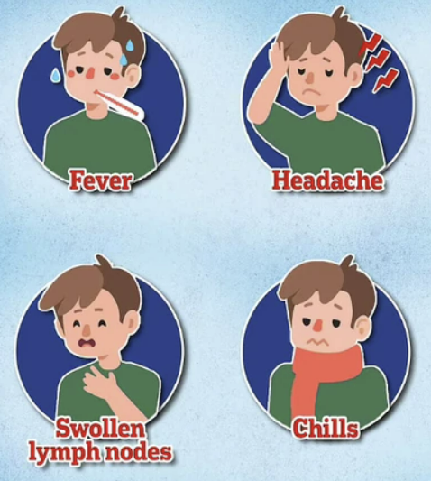 - 발열, 두통, 임파선염, 피로감 등 초기증상이 있음