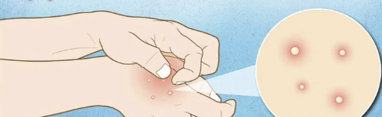 - 수포와 딱지가 피부에 생김